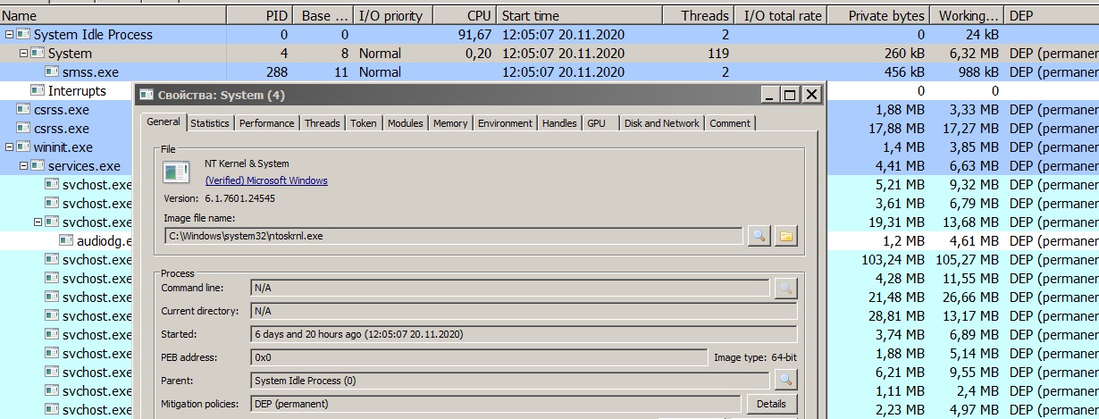 У него есть важные нам (как мне кажется) атрибуты: Name, ProcessId, CreationDate, KernelModeTime, UserModeTime