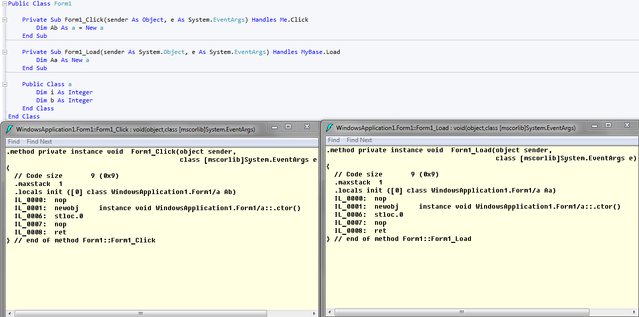 Как я и говорил - при As New и As Type = New il-код одинаковый, т.е. напрямую создание объекта