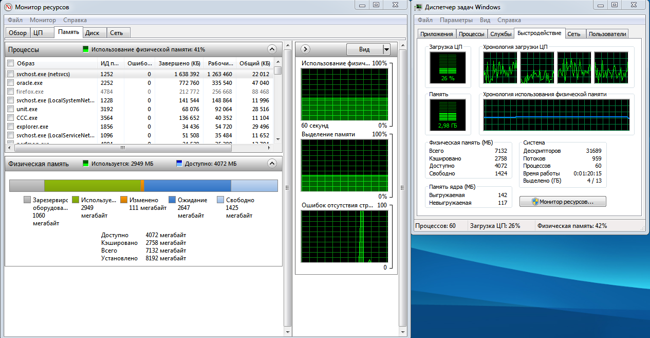 В "спокойном состоянии" (когда не запущена ни одна программа) диспетчер задач показывает, что "естся" 3Гб оперативки. Пару дней назад переустановил Windows 7, и потреблялось около 1-1,2 Гб. Помойму это началось после того как удалил нескл. программ автоустановщиков драйверов (которые устанавливал ранее).